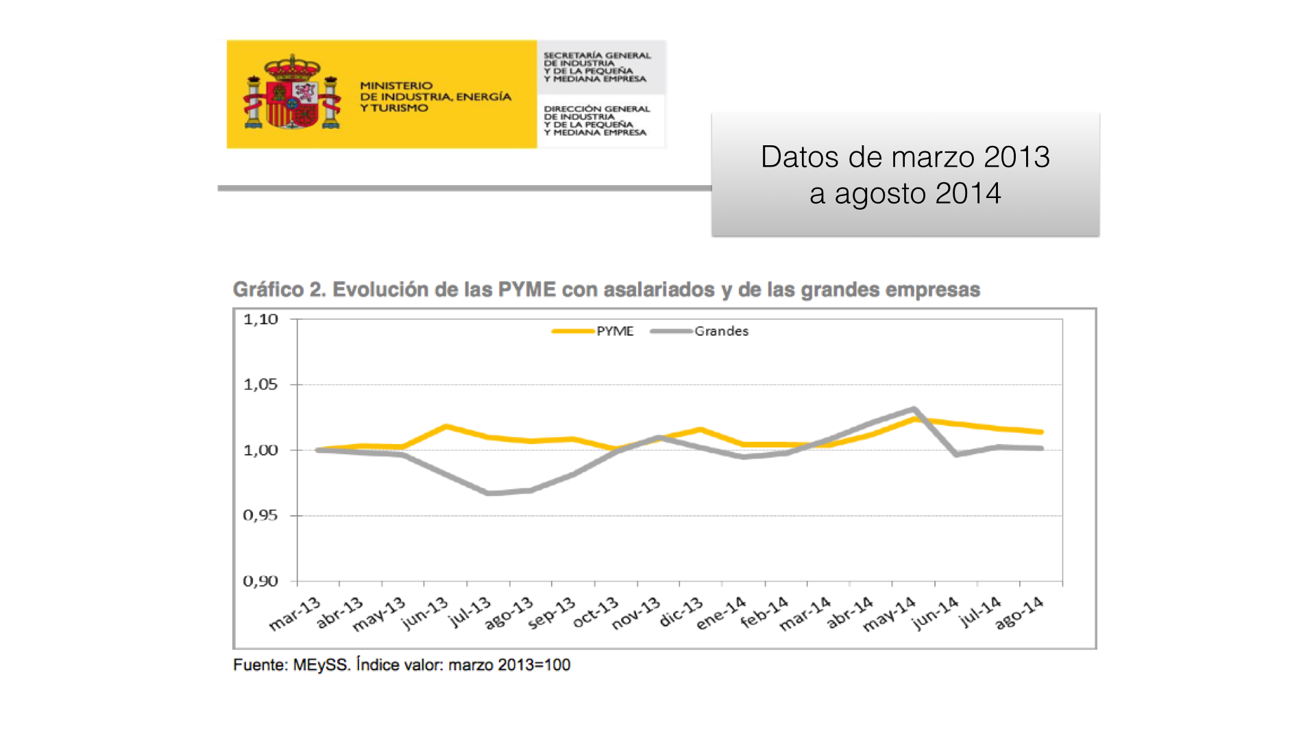 Si nos fijamos en esta gráfica, podemos observar que la PYME produce mucho empleo, pero además podemos observar que un empleo mas estable y de calidad. Algo que nuestro gobernantes deberían observar y reflexionar, porque por desgracia las medidas que se toman son deficientes para la PYME y cada vez mas favoritismos a grandes Empresas, que por su tamaño e imagen tienen mas poder y repercusión comunicativa que la gran cantidad de PYMES que rodean a un monstruo.